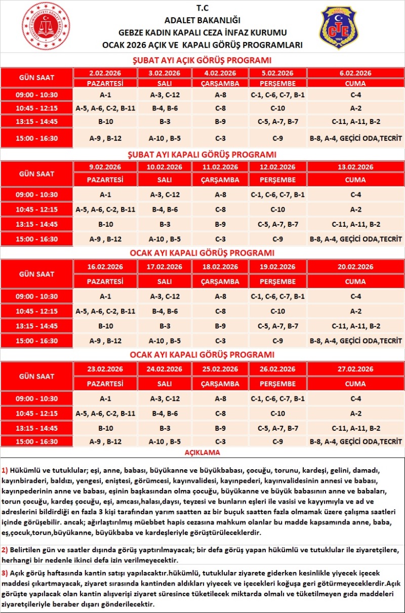 ŞUBAT 2026 AÇIK-KAPALI GÖRÜŞ PROĞRAMI