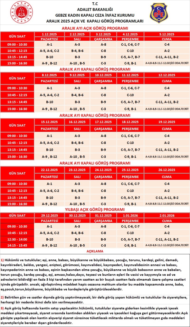Aralık 2025 Açık ve Kapalı Görüş Programı